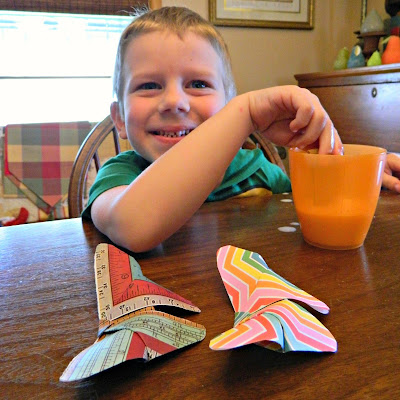 We also spent the afternoon making paper butterflies! They REALLY got into it, helping me chose the best papers and suggesting which size print would work the best for different size butterflies.